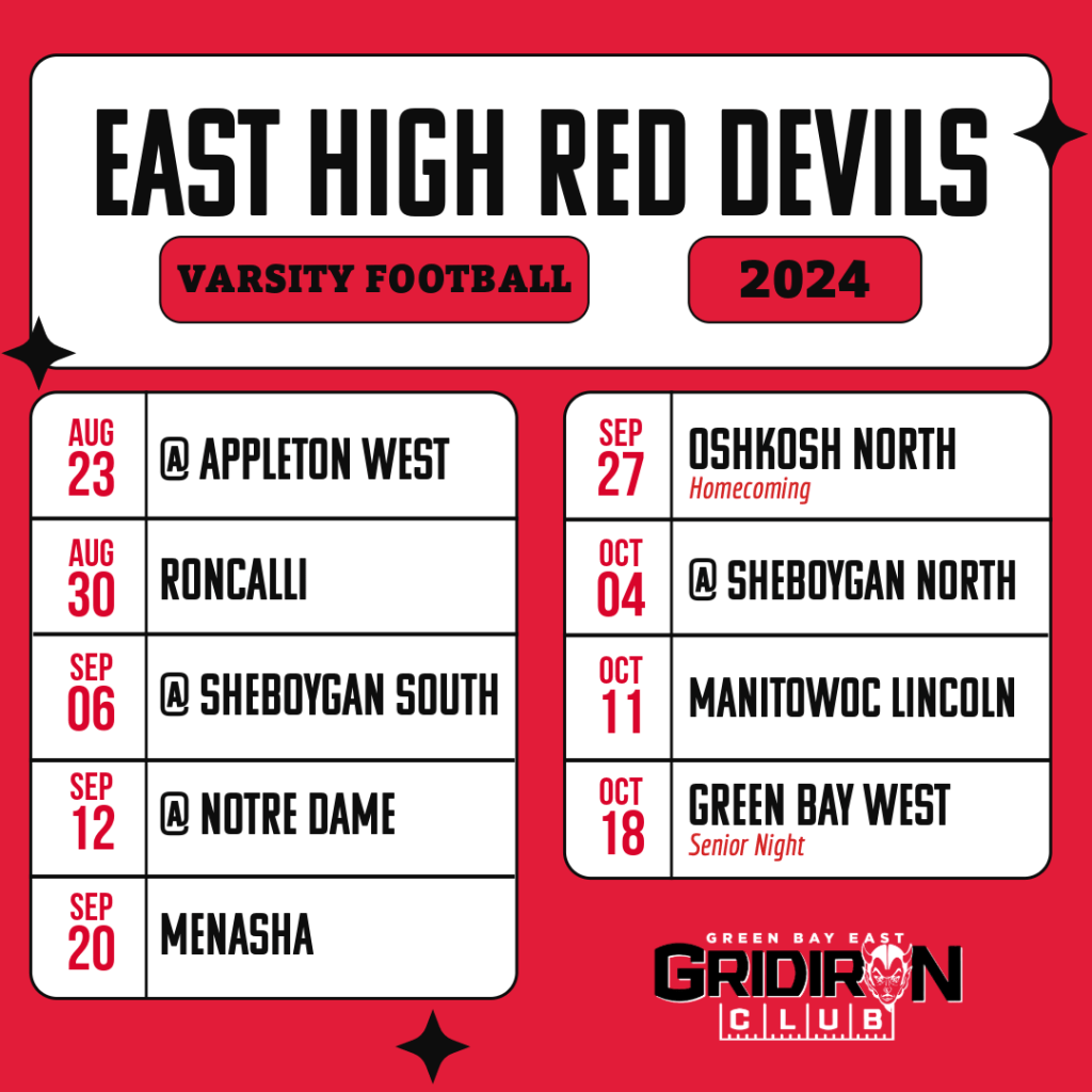 Please share this link with any East High family, friends, alum, and fans that you know. Then make sure to wear your new gear and rep East at games this fall. Here’s a copy of the schedule: